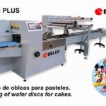 Envasado flow-pack de obleas para pasteles en envolvedora flow pack BF 325 H PLUS con film polipropileno neutro e impreso con centraje de impresión....