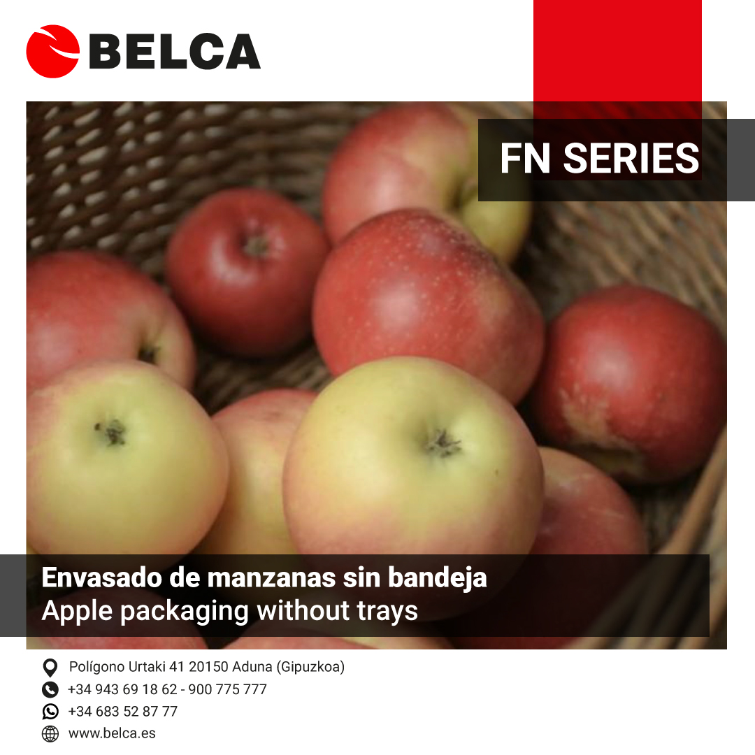 Descubre nuestra Flow Pack de la FN SERIES envasando cuatro manzanas sin bandejas en la línea de clasificación, de forma eficiente y continua. Ahorro considerable de film y reducción en los costos de materiales. |